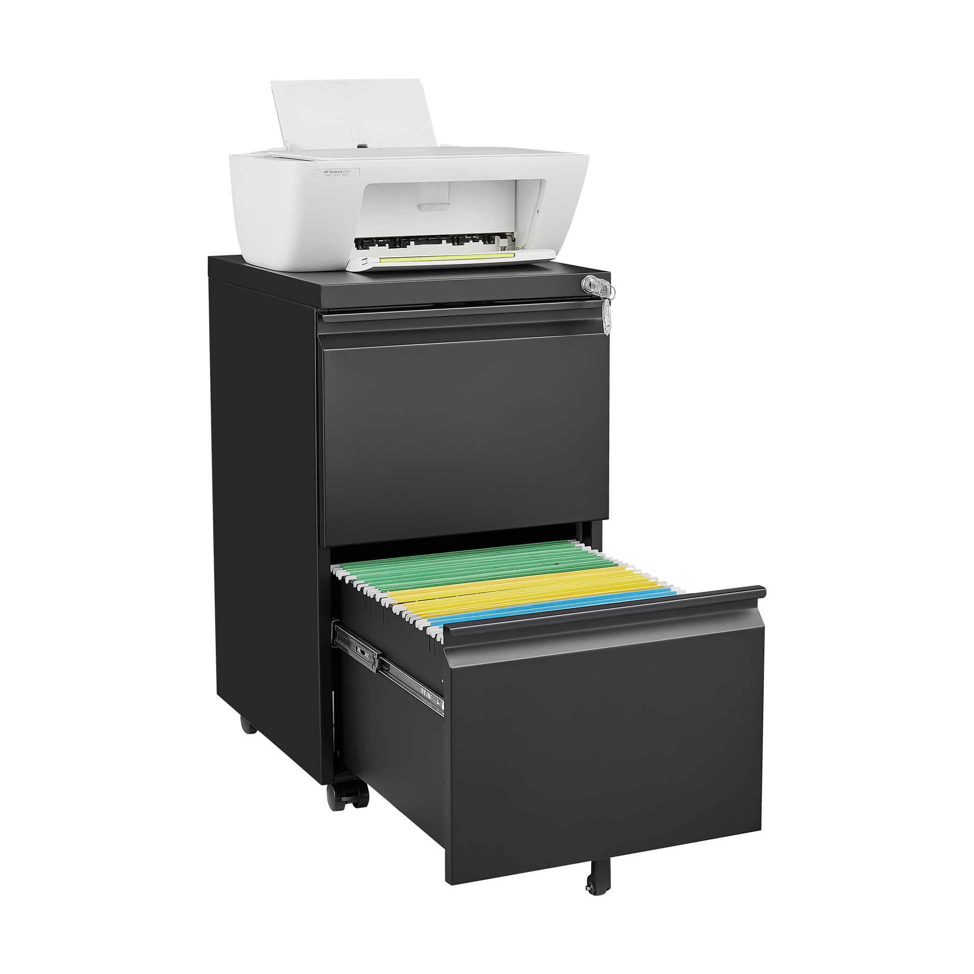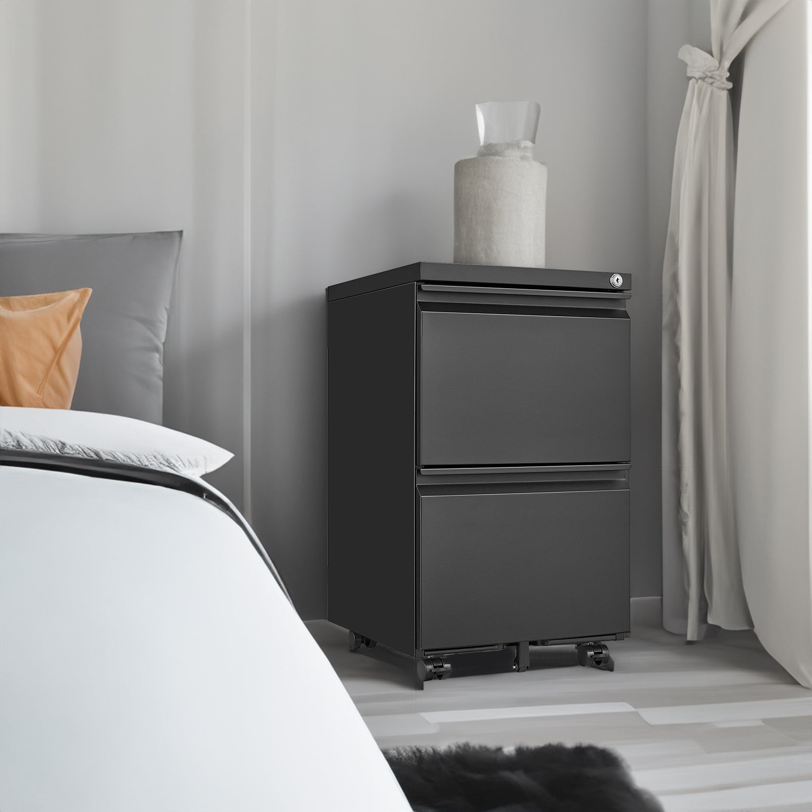 Product Name:2 Drawer File Cabinet with Lock, Metal Under Desk Rolling Filing Cabinet fits Letter/Legal/A4 Size for Home Office, Mobile Filing Cabinet, Assemble Required, Black